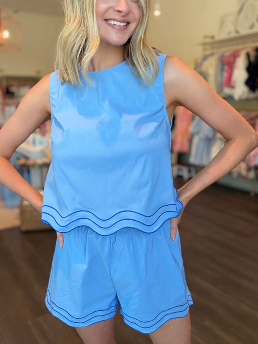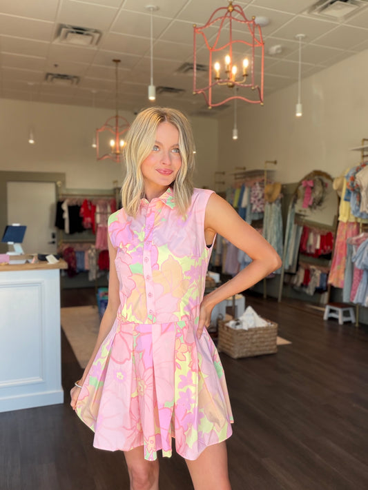 Karlie Solid Scallop VBack Court Dress (print or blue)