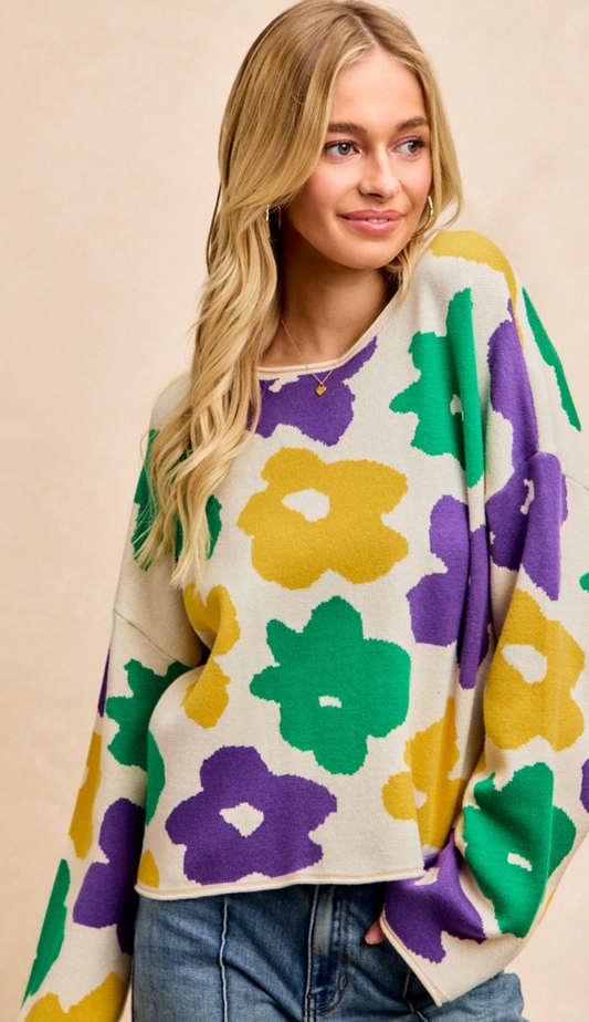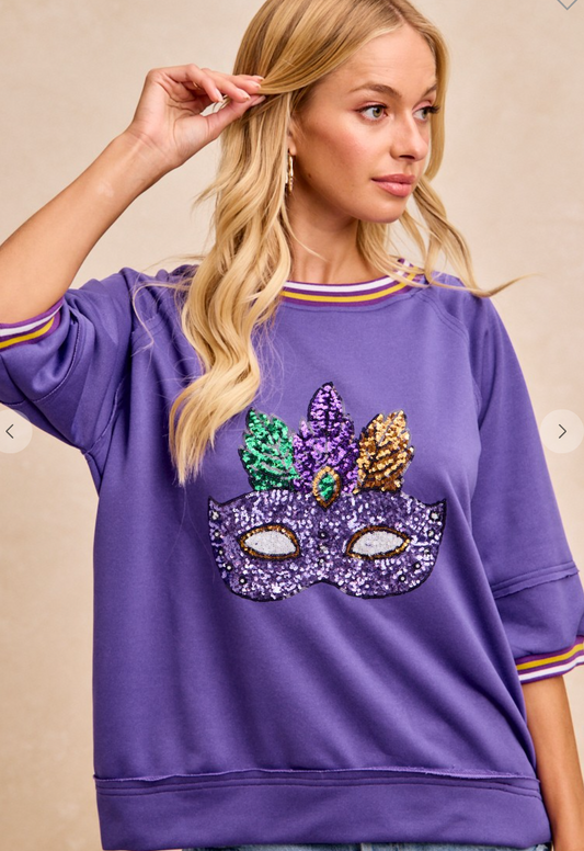 Mardi Gras Jersey Style Sweatshirt Top (preorder)