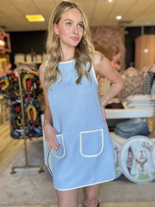 Blue Tweed Mini Dress