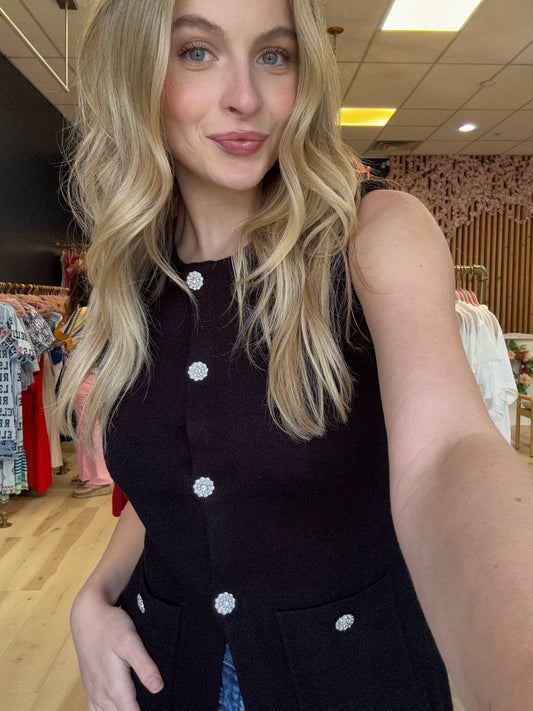 Sold outBlack Crystal Button Sweater Vest
