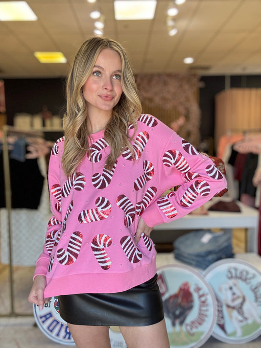 Amor Exclusive Mom + Me Candy Cane Sequin Sweater with Pearls (preorder)