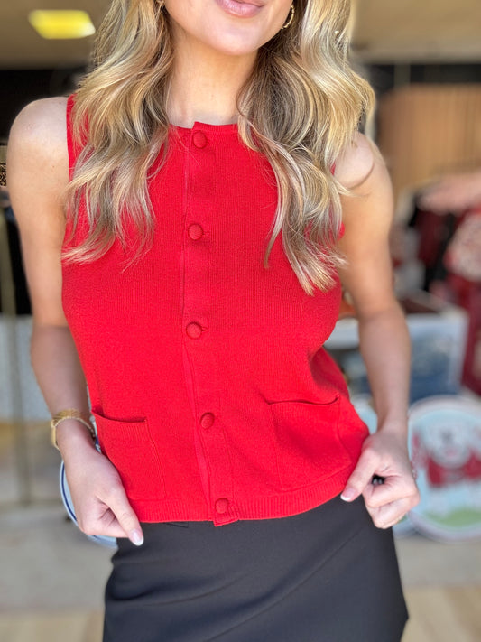 French Connection CosySoft Knit Vest in Red
