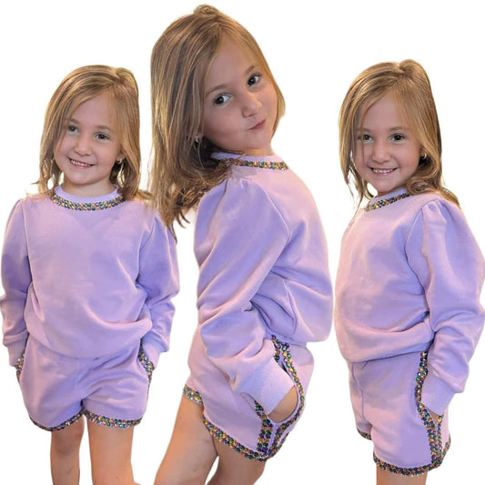 Kids Mardi Gras Bow Skort Set