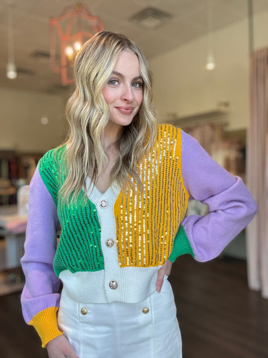 Mardi Gras Colorblock Cardi