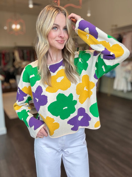 Sold outMardi Gras Floral Sweater