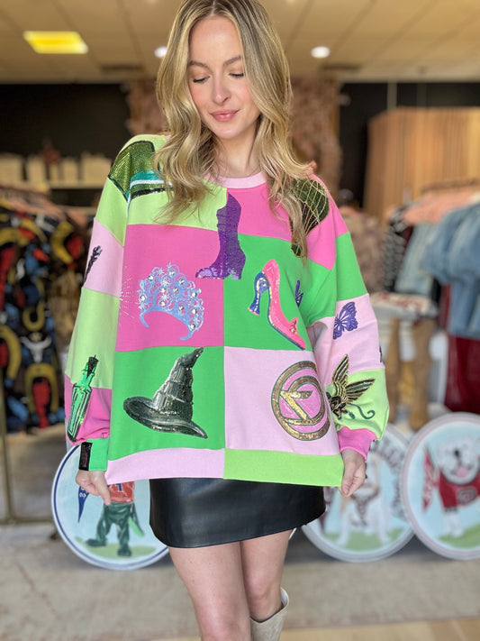 Queen of Sparkles Licensed Lavender, Pink, and Green Checkered Wicked Sweatshirt