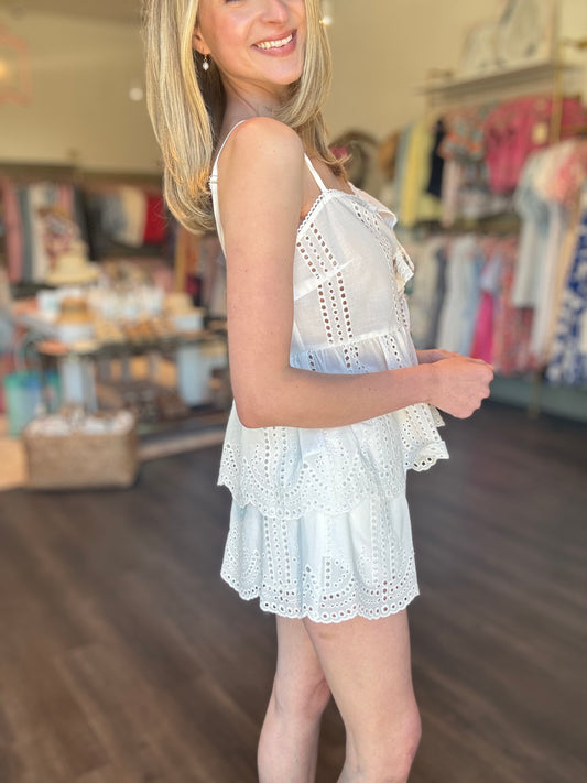 Lace Eyelet Detail Set - White