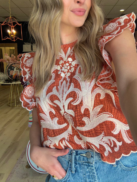 Emily Mccarthy Britt Top in Tiger Jacquard