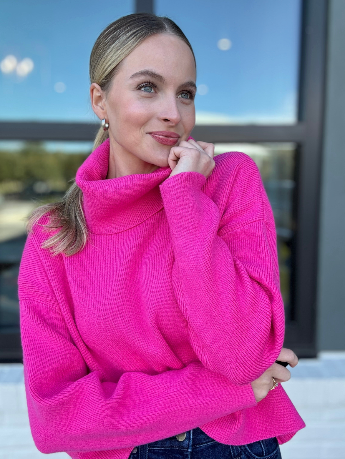 The coziest lightweight cowl neck sweater! We are in LOVE! SO soft, so flattering on, easy to dress up or down, and 3 great colors! The absolute coziest! For day pair with wide leg denim + a mule, for night add a leather skirt + knee high boot! OBSESSED!