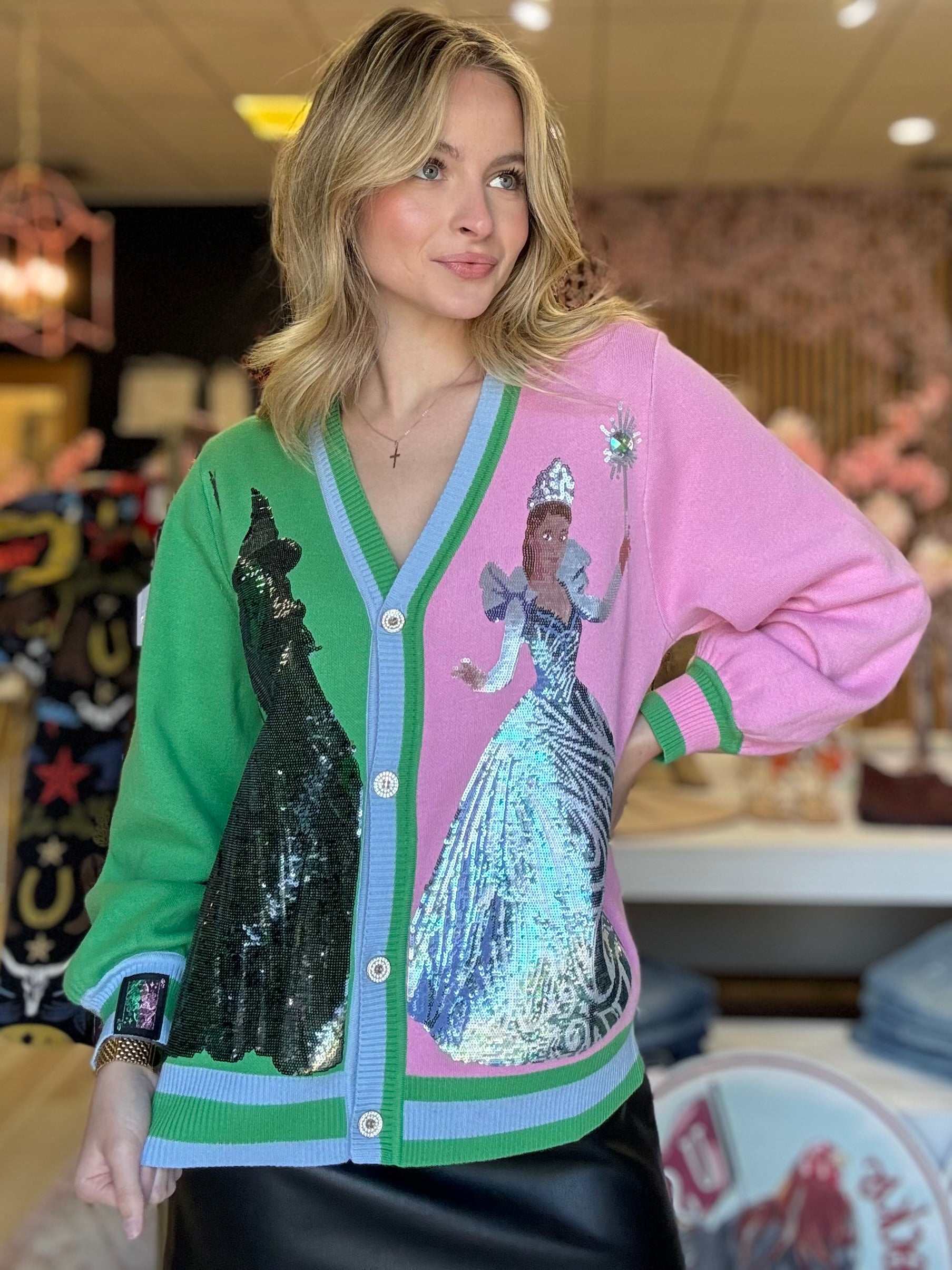 Queen of Sparkles Licensed Colorblock Glinda and Elphaba Button Up Cardigan
