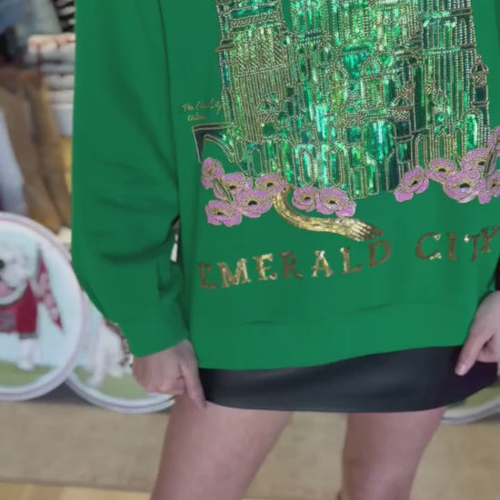The absolute most STUNNING sweatshirt we probably have ever seen Queen produce! The details on this one are nothing short of amazing! The way the light reflects is chefs kiss.The PERFECT Emerald City Sweatshirt!
