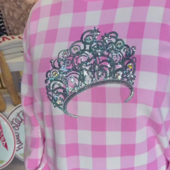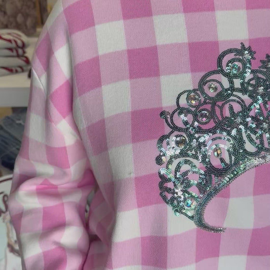 Queen of Sparkles Licensed Pink Gingham Glinda Crown Sweater