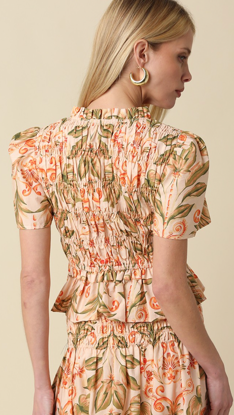 The most GORGEOUS Spring set. Giving all of the Farm Rio/Resort Vibes for the best price! Beautiful print, smocking detail, and so easy to pair together or separate! Dress her up or down!