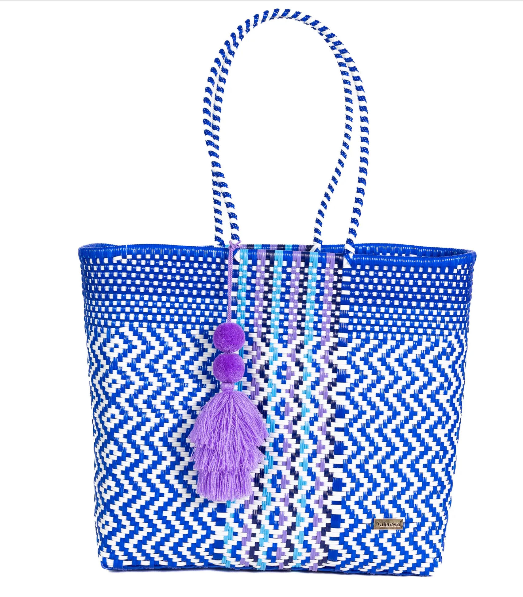 Blueberry Bliss is for those who love bold, refreshing style. Featuring deep navy, soft lavender, and sky-blue woven into a lively zigzag pattern, this design feels both vibrant and cool. Finished with playful purple pom-pom, it’s a striking piece that brings a pop of joy to any outfit.